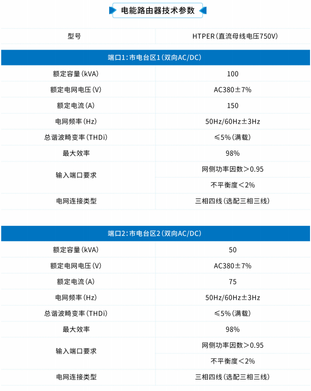 端口數(shù)量和大小可根據(jù)用戶需求定制,較大功率的電能路由器采用多模塊并聯(lián)設(shè)計,由多臺柜體組成整套電能路由器,功率范圍擴(kuò)大到400kW,單端口最大功率可達(dá)500kW。